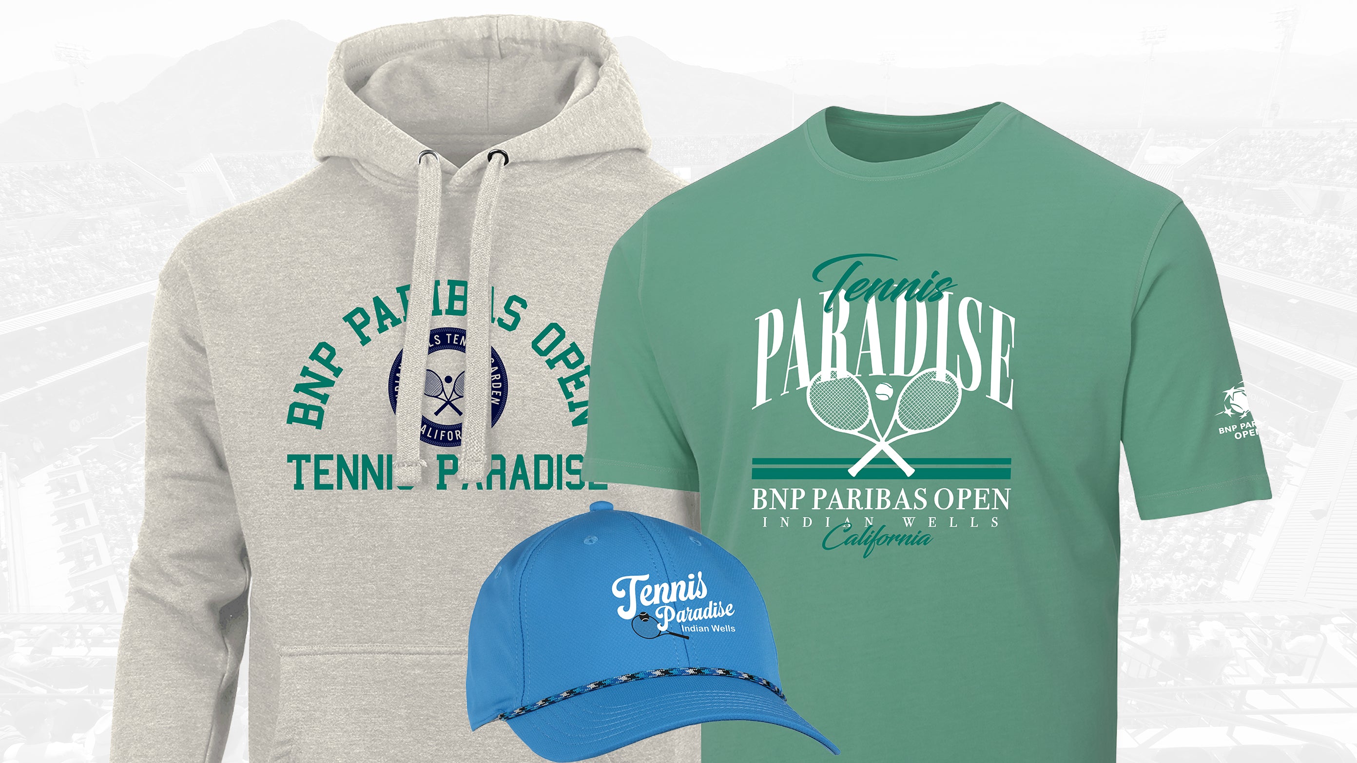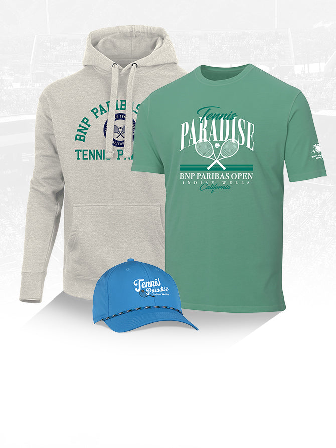 Represent the BNP Paribas Open with official apparel and headwear crafted for comfort, performance, and everyday style. Whether you're looking for versatile tees, lightweight layers, or classic hats designed to fit seamlessly into your wardrobe, we've got you covered. Each piece reflects the elevated look and feel of the tournament, making it easy to show your BNP Paribas Open pride both on and off the grounds.